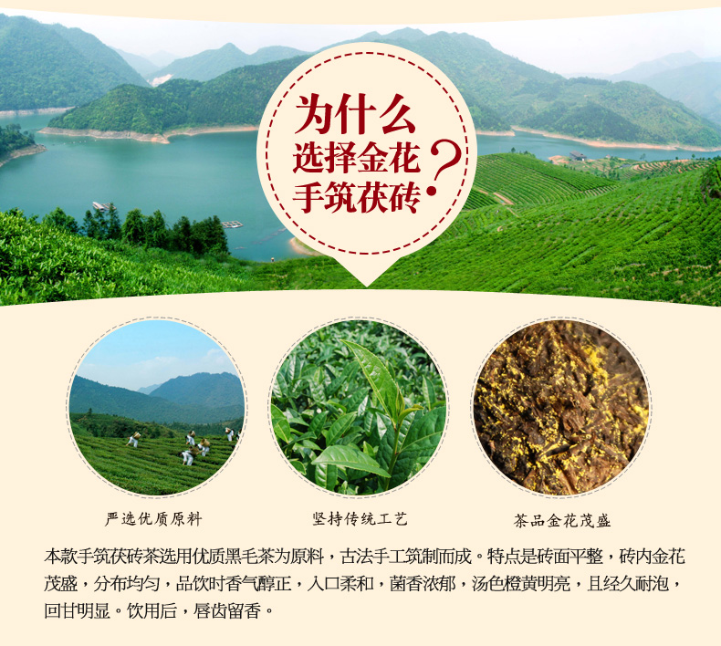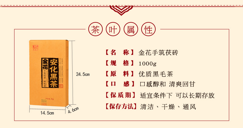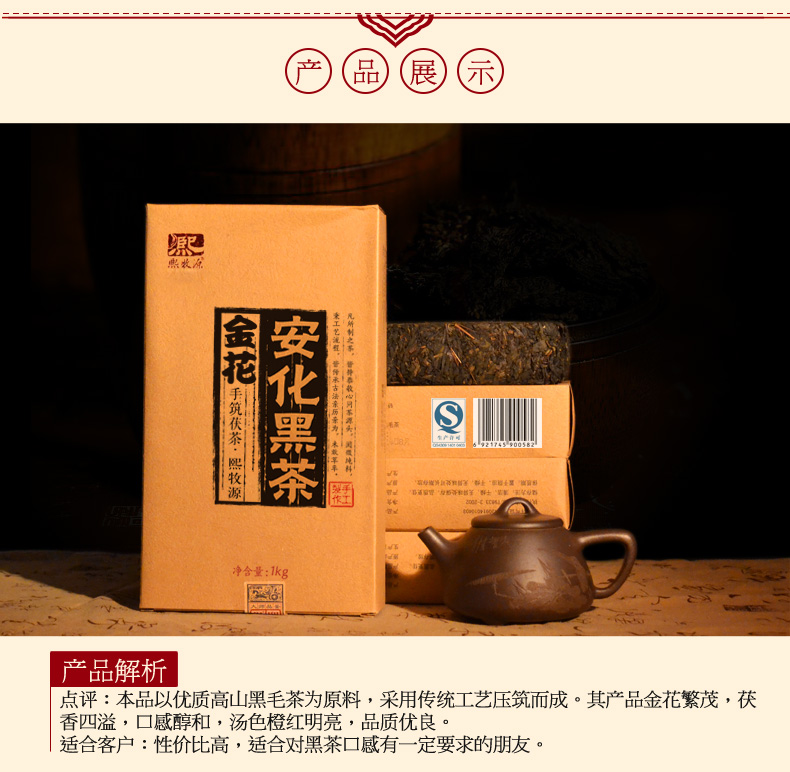 黑茶湖南安化安化黑茶茯砖茶正宗熙牧源茶叶金花手筑茯茶安华正品